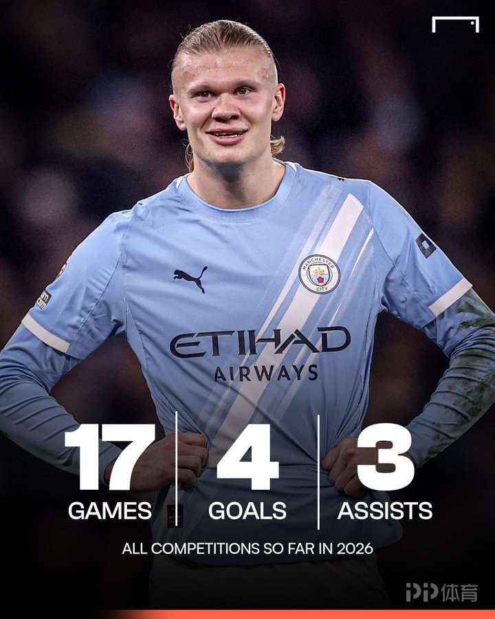 进球网统计了哈兰德2026年的数据,这位曼城前锋出战17场比赛,打进4球,助攻3次;2025年同期哈兰德17场11球4助。